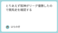 HOME 2026.01.10 人気記事 15分で万馬券が当たる予想例の解説 2023.08.302026.01.10 京都の重賞の予想で使えそうな血統考察 2023.10.102026.01.10 穴党UMAJOの馬券予想ルーティン 2023.08.242026.01.10 人気のカテゴリー G1予想 京都の重賞の予想で使えそうな血統考察 2023.10.102026.01.10 スプリンターズSの予想で使えそうな血統考察 2023.09.252026.01.10 とりあえず阪神がリーグ優勝したので競馬史を確認する 2023.09.142026.01.10 他も読む 中央競馬 京都の重賞の予想で使えそうな血統考察 2023.10.102026.01.10 スプリンターズSの予想で使えそうな血統考察 2023.09.252026.01.10 とりあえず阪神がリーグ優勝したので競馬史を確認する 2023.09.142026.01.10 他も読む 地方競馬 ついに10万馬券を当てたので忘れないうちに手順を示す 2026.01.12 一発逆転ファイナルレースで有終の美を飾ろう 2025.10.262026.01.10 15分で万馬券が当たる予想例の解説 2023.08.302026.01.10 他も読む 新着 ついに10万馬券を当てたので忘れないうちに手順を示す 2026.01.12 一発逆転ファイナルレースで有終の美を飾ろう 2025.10.262026.01.10 京都の重賞の予想で使えそうな血統考察 2023.10.102026.01.10 スプリンターズSの予想で使えそうな血統考察 2023.09.252026.01.10 とりあえず阪神がリーグ優勝したので競馬史を確認する 2023.09.142026.01.10 他も読む 筆者プロフィール X @888nokookon888 note 思想強めエッセイ「はちの仔災々」